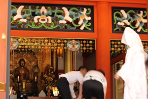 「常行堂」は残念ながら修復中で、囲いがあったので茅葺屋根以外の外観がわからず…。