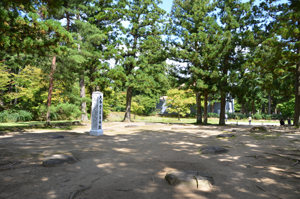 右手に向かい、「南大門跡」(←敷石が残っているのみでした)