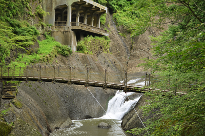 トンネルの途中、左側を出ると吊り橋があります。