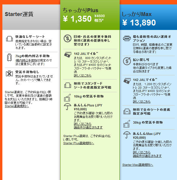 ジェットスター:Starter Plusは変更手数料が無料など 色々便利です。