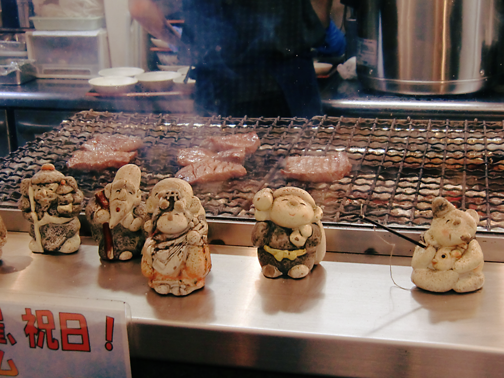 カウンターに並んでいる「七福神」をながめつつ 焼けるのを待つ。